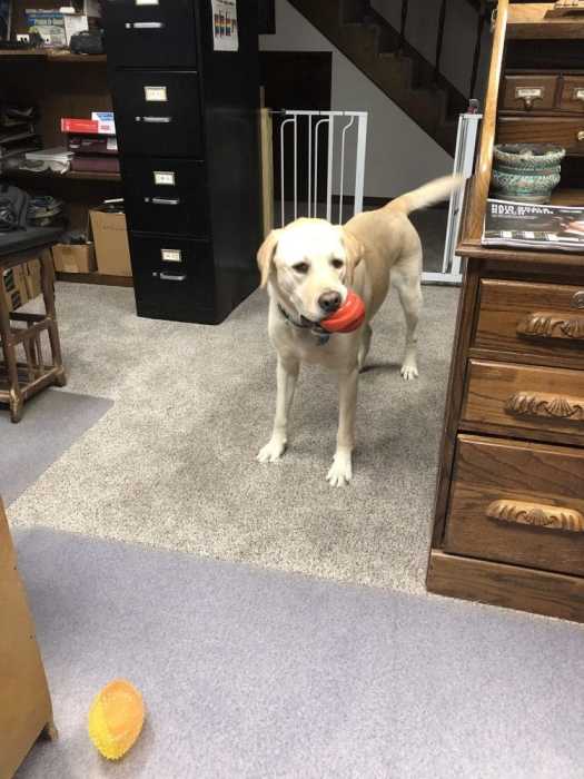 Amber is a 95-pound yellow lab. She thinks she is a ferocious guard dog. I don’t really think she gets the idea, though.