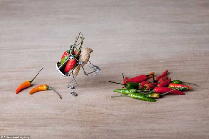 We call this yard critter our “Cleaning Robot.” He is ready to clean up any spill with his fireplace broom and shovel dust pan.