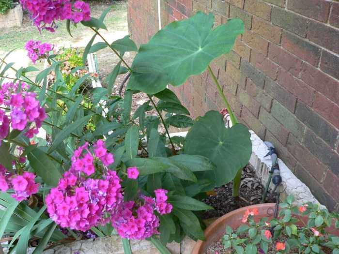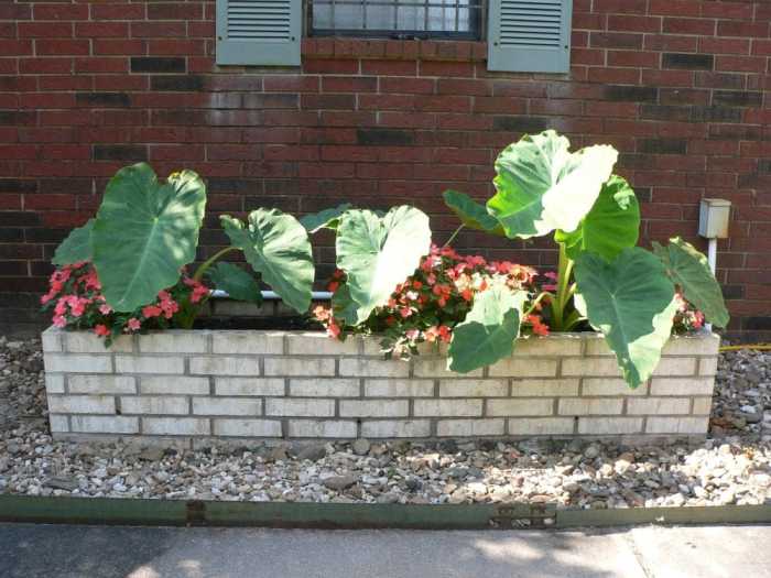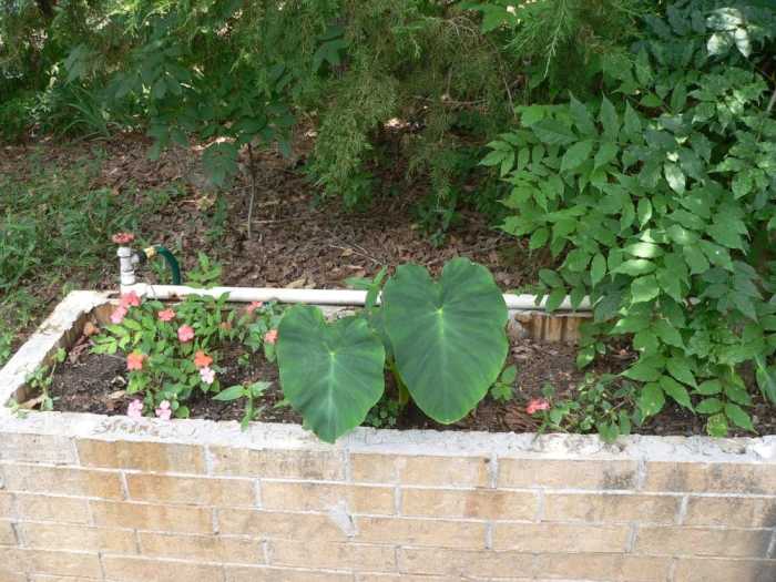 I have elephant ear plants in three places in our yard – one main planter and then two where I really didn’t expect them to come up and thrive. This one sprouted up about a week ago. I had honestly forgotten I planted this one. I’m delighted.