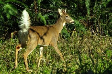 Yesterday on the way home from our errands, a white-tailed doe jumped across the road in front of our truck. She was absolutely beautiful. Amber was in the back seat – one of her favorite places, but Amber didn’t see her. This gives you an idea –