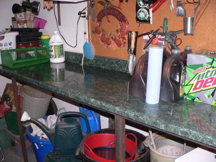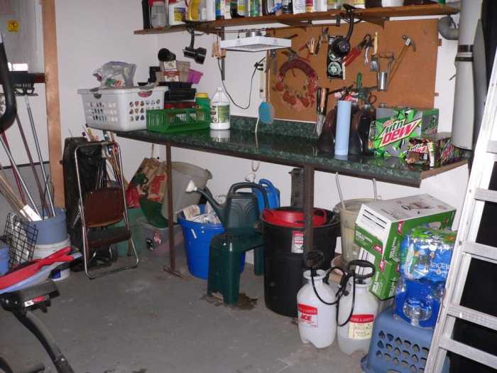 I found the counter in my part of the garage, putting as many soft drinks and bottles of water into the fridge as possible, throwing stuff away, and consolidating. You can actually see there is a counter there now. I will do more at a later date, but the main focus today was finding the garden irrigation system timer.