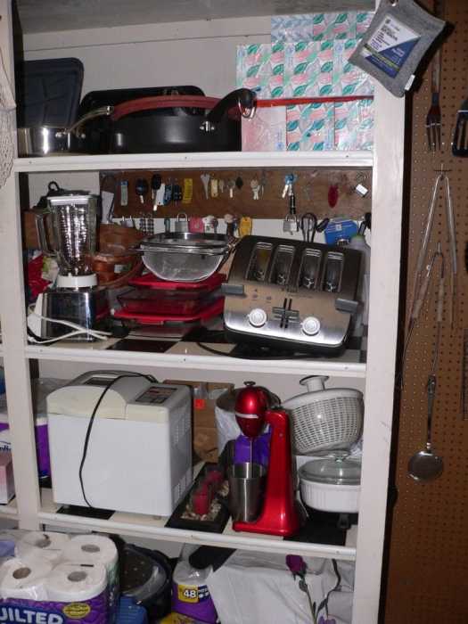 Instead, I think I’ll work on our pantry. It’s gotten out of hand over the past couple of months, since there wasn’t a good place to put extra supplies and things tended to get ‘stuffed’ wherever it was out of the way a bit. This will be a several day project, but it’s overdue and I don’t have to get the cooperation of Mother Nature to do it.