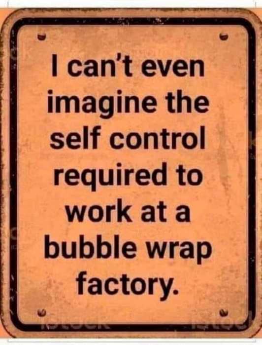 Suffice to say I would fail miserably. I can’t even pass a small piece of bubble wrap without picking it up immediately and starting to pop the bubbles. I have to go in another room because it drives my husband crazy. If I were a really awful person, I would now know what I could do when my husband makes me angry…. :0)