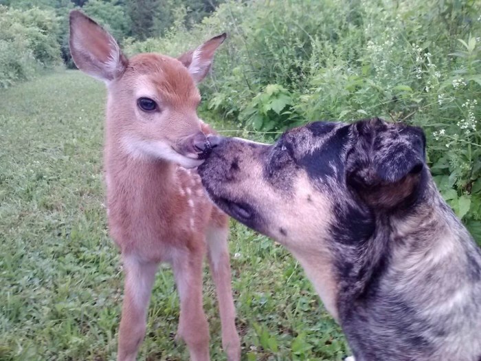 Tagged as amazing animals, fawn and dog photo, Love on a Sunday