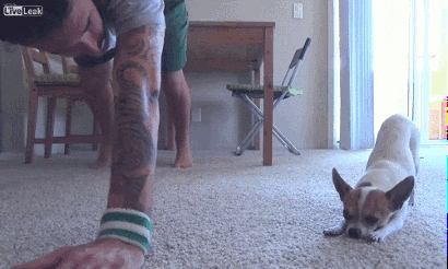 Yesterday my dog, Amber (yellow lab) and cat, Abby, BOTH joined me when I got down on the floor. My husband finally started to laugh and then encouraged the animals to give me a break, rather than keep trying to lie down beside or ON me.