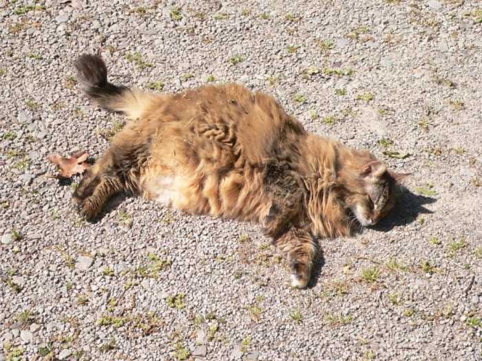 Amber and Abby ‘walked’ in the yard with me this morning. (Abby was less enthusiastic about all the walking around than Amber (who kept running back and forth), but she luxuriated in the warm and the sunshine just off the driveway pad.)