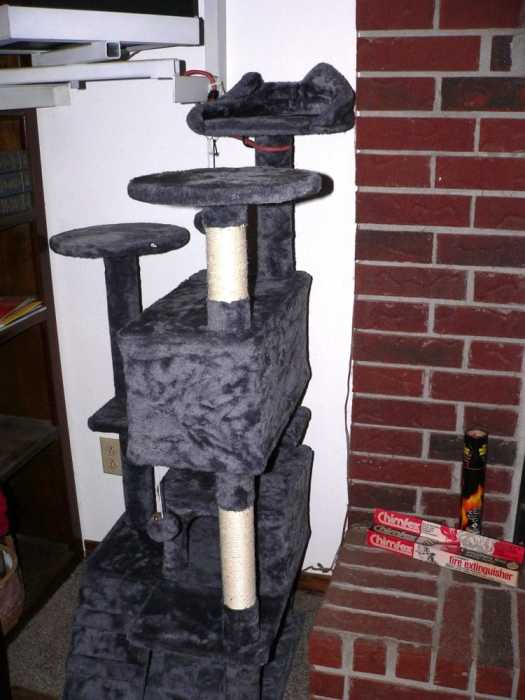 The new cat tower was delivered – to the HOUSE – yesterday by Fedex about 2:30. It took us both working together until about 5:30 to get the thing assembled. We joked about remembering when we were up most of the night of Christmas Eves putting toys, bicycles, etc. together for our son…