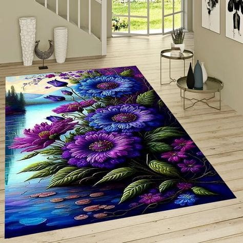 I’ve always loved area rugs, loving the way they can tie a room together, add color, and more; but THESE simply blew my mind. I guess it’s like anything else. You ask someone to ‘design a rug,’ and talented people will knock your head off with their vision and creativity. These rugs become the focal point of wherever they are. I think they’re magnificent.