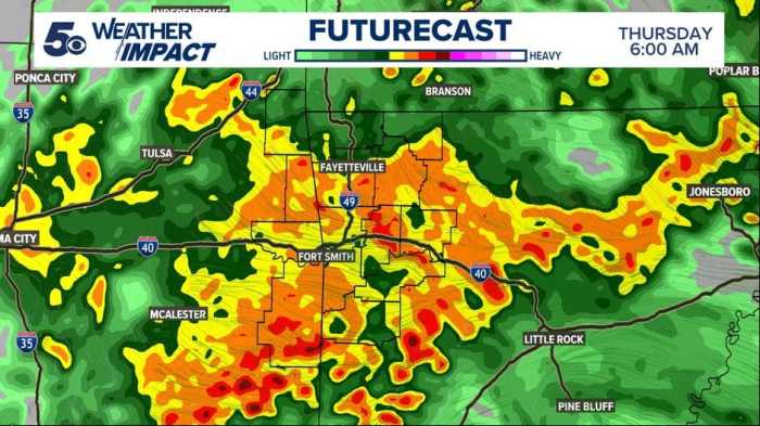 This is our weather map this morning. If you look right in the center, you’ll see Fort Smith. Greenwood is just south and east of there. We’re due for 2 to 4 inches of rain before the rain stops and are under a flood watch. We’re on top of our ridge line, so we don’t have to worry about flooding, but the tech may have trouble getting through Greenwood. I am glad it’s RAIN, rather than sleet, freezing rain, ice, or snow.