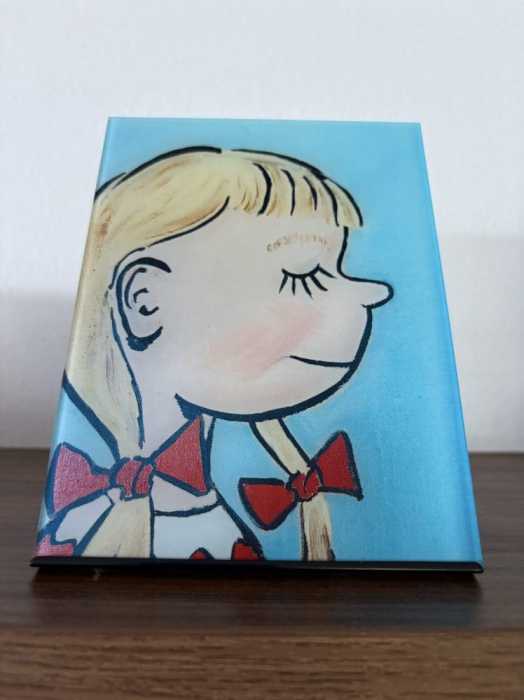 I have shown you this recently. It’s one of the few oil paintings he did. I loved a set of three landscapes he did – 3 small paintings of some evergreens – framed in the same way. He also did these ‘portrait/personality’ paintings of my brother and me. Brian had an image of this reproduced on glass and it’s sitting on my mantel in my new condo. So my dad lives on in my heart and he is now in Thailand with me.