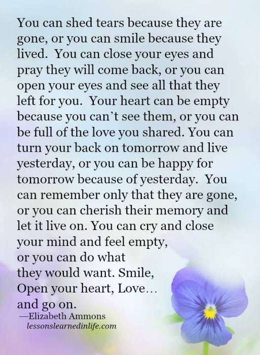 I’m happy she has found peace. She handled things the way she wanted to. The hospice people made it so she didn’t suffer. I hope to see her again some day.