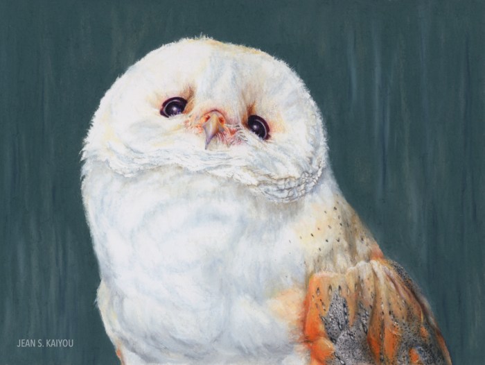 Right now, I think this one is my favorite, although that changes each time I scroll through her work. I love owls, and this pose is endearing. I want to touch him, although I would doubt he would allow it…