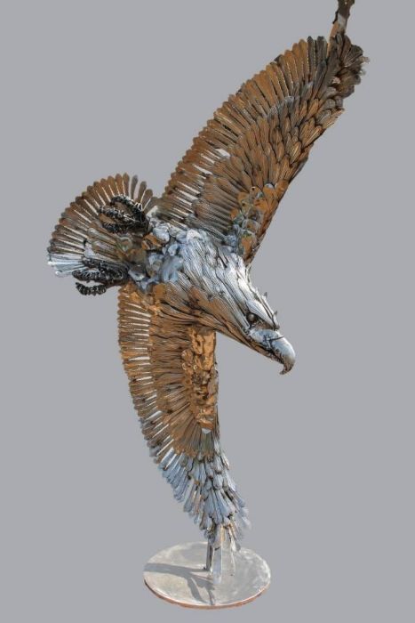 Tagged as metal art, metal sculpture, scrap metal art, spoon art