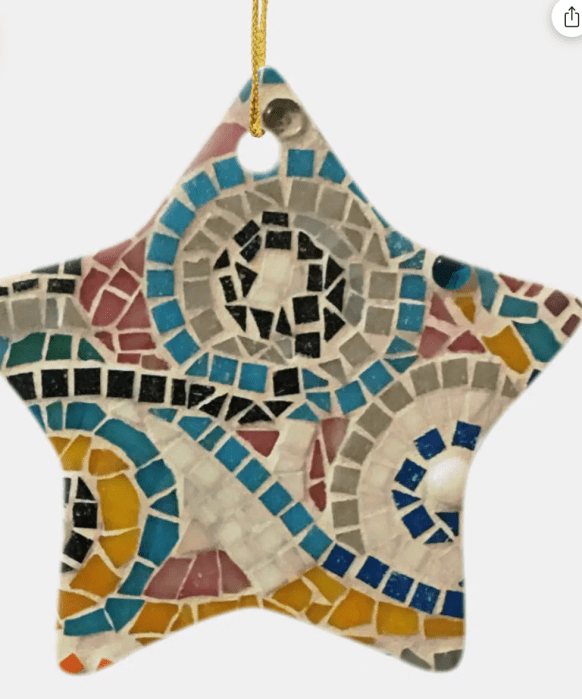 Okay, Linda. I had to come back and find this post. I was sooo sold on the star ornament because from this picture it totally looked like it was tiny bits glued or baked onto the ceramic that I did NOT thoroughly read the ad on Zazzle and just ordered it. Lesson learned on my part!