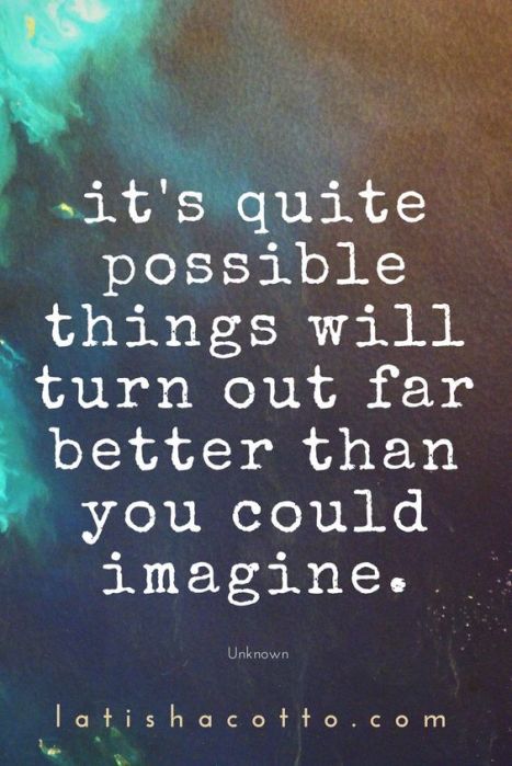 Sometimes our minds are our own worst enemies – worrying about things that MIGHT happen, imagining awful scenarios. I think this quote is so refreshing, so different, so optimistic. I like it. A LOT.