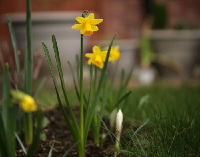 In Arkansas we knew spring had sprung when our daffodils sprang up. We had them all around our well house, plus dotted around in our planters, plus some clumps of them in different places in our front yard. I loved it when they bloomed, making our yard smile.