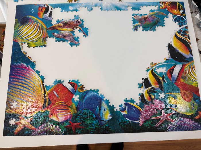 Brian was unimpressed, but if you look just between the red fish and the blue fish in the lower center, just below the red fish’s mouth, you will see a tan/brown circular type shape. THAT IS THE MAJOR TURTLE’S FOOT!!!!!