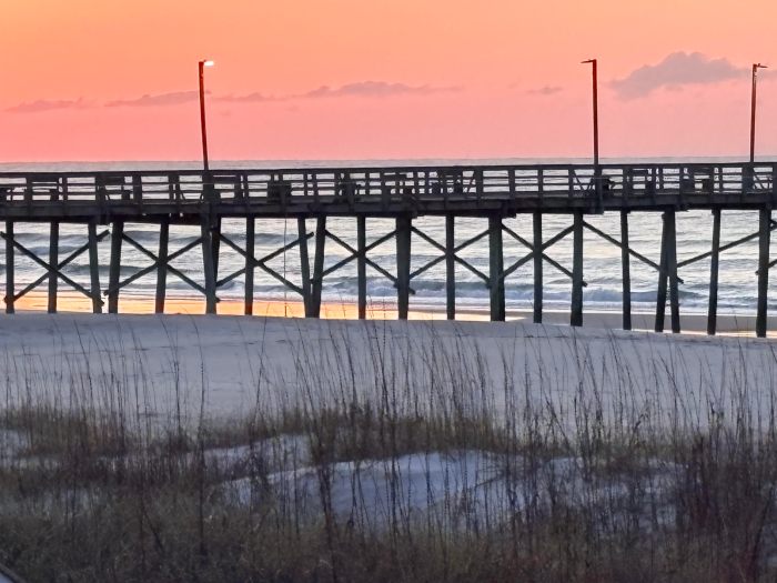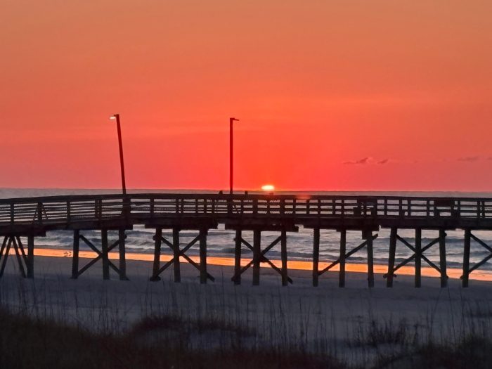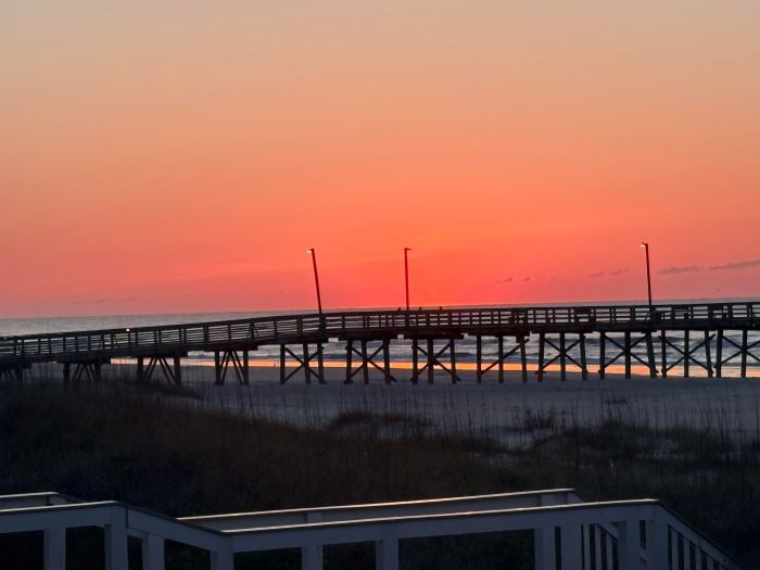 My SIL is having a much-needed, much-earned time at the beach this week. You and I are the recipients of a wonderful virtual vacation because of her generosity in sending photos. I’m sharing three with you today of the fact that she can enjoy views of the sunrise AND the sunset from this place!