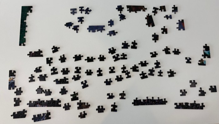 Can you see the Cheetah? Oh, come on, you can if you look carefully. Look on the left side of the photo toward the bottom, and you can see the tip of his foot. That’s the ONLY part of him that is anywhere on the border of the puzzle. Needs work, I know…. hahahahahahahah 🧩 😂