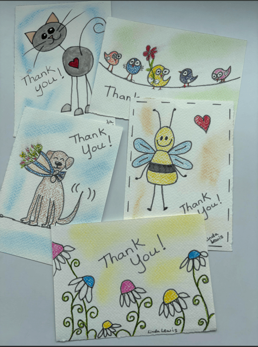 I spent my time at the cafe today creating some thank you cards for Khun Nong’s sister, who will be cleaning both Brian’s and my places every Friday while Khun Nong is gone.