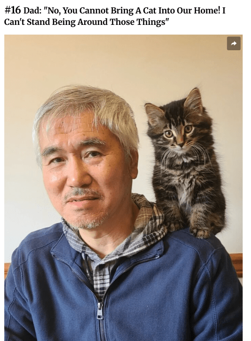 Tagged as "Cats 1st Christmas" BoredPanda.com, cute cat and dad pics, Dads plus pets they didn't want