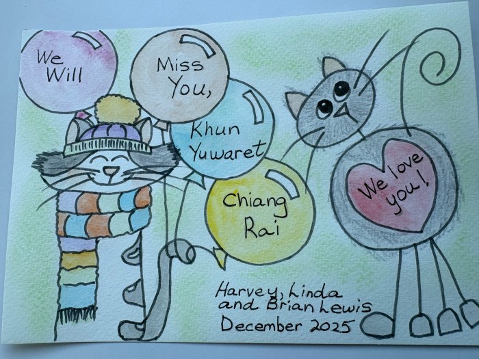 We BOTH lost it because she told us she is leaving at the end of the year, relocating to Chiang Rai to be closer to her family. We are happy for her, but I am pretty devastated that she’s leaving. I made her this card to give her Thursday, at what might be the last time we see her –
