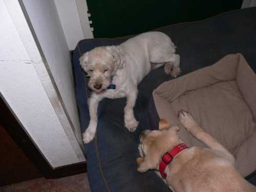 Things are beginning to calm down now (other than the latest incident with Molly). The cats hide, go outside, or get up somewhere Amber has trouble reaching them. Molly either goes off by herself, or MAY allow Amber to nose her a bit, or sit on the bed in the living room with her. She can curl up in her bed under my feet in the office with Amber only bothering her a little bit.