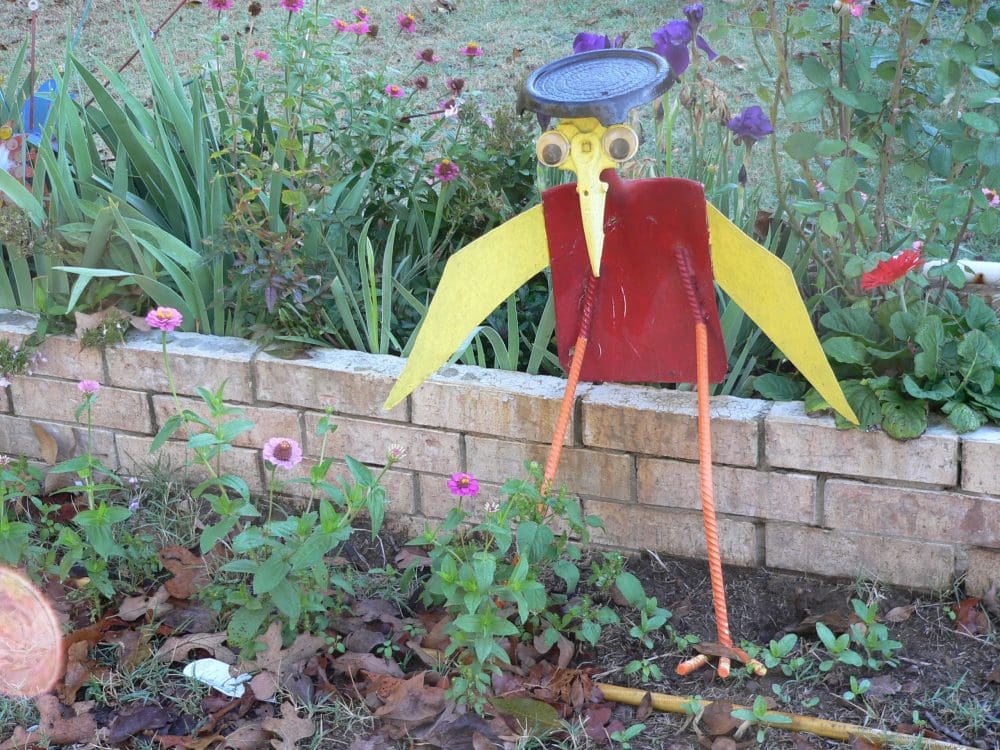 My husband is good about putting bird seed in the bottle we have right outside the dining area window. He likes it that the birds have to actually get into the gallon-sized bottle, pick up a seed, and then fly away. They’re really close so we can see them well as they eat breakfast. He also puts seed in the shovel bird we made and attached to the railing of the deck. Not so much the other feeders hanging about.