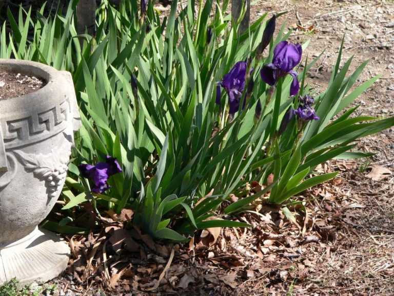 Right now I’m really pleased at the display of twice-blooming deep purple iris we have around the yard. Here are some pictures –