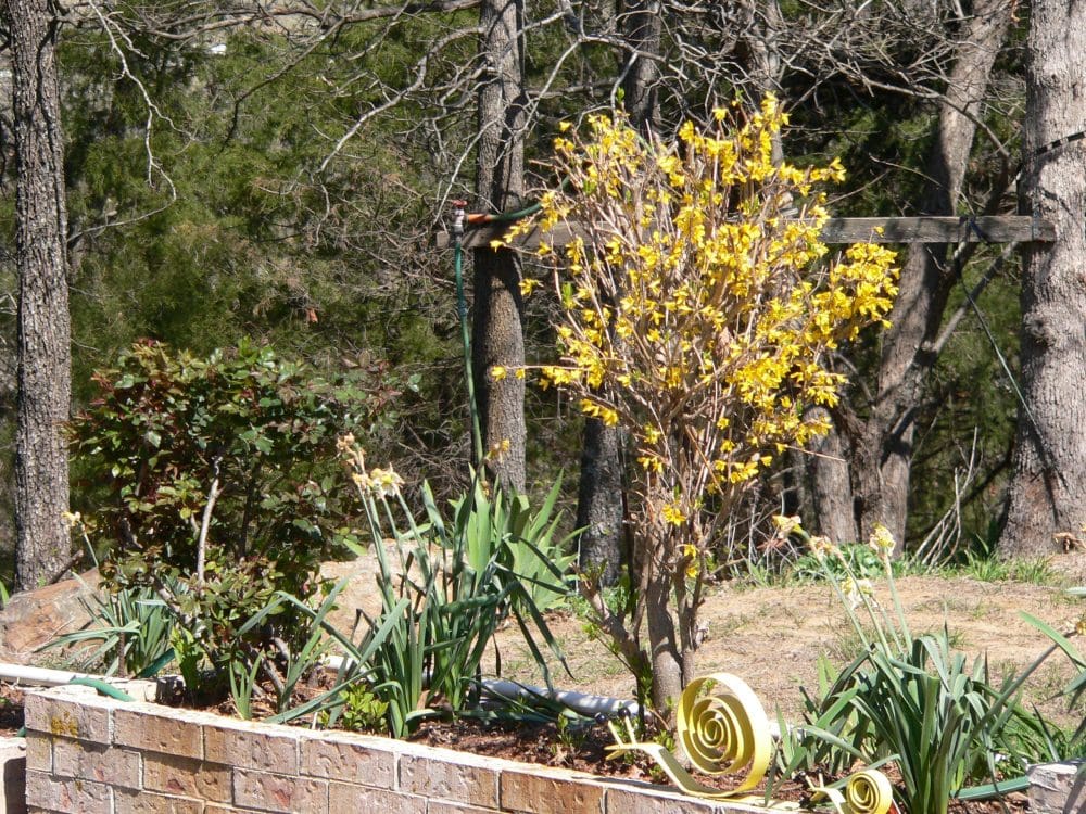 I cut back our forsythia bush severely last fall, tired of it trying to encroach and cover up everything else in the flower beds. I wasn’t sure it would bloom at all.