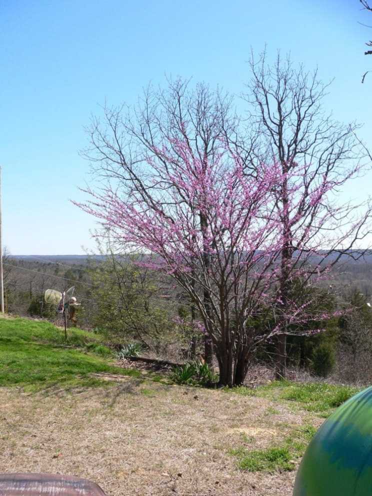 The Redbud tree is the state tree of Oklahoma, but we love it here in Arkansas, too. After a long, drab winter, the sight of redbuds in bloom makes your heart swell. We are lucky to have several growing on our land. Each year we cut down things around them, trying to give them the best chance of healthy growth we can. I guess you can buy and plant them, but the only ones I ever see grow wild all over the place.