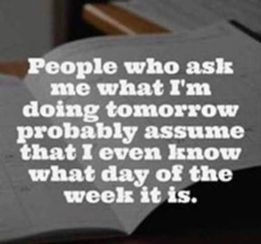 I actually have to check my watch to see what day it is. THEN I check a calendar to see if anything is written there. THEN I see what the weather is doing and the forecast. THEN I check my ‘to do’ list. THEN I check with my husband. This last is the deciding factor.