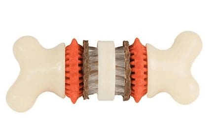 When we first got it, It’s made of soft rubber and squeaks. I thought it was really cute, but wouldn’t last long. I was wrong! It has lasted for about 3 months so far. She just loves it. She finally ate off one of the eyeballs, so it’s a one-eyed frog now, but seems to have many hours left in it. (sorry. I just tried to find the toy on the net so I could give you a URL for it, but I guess it’s been discontinued.)