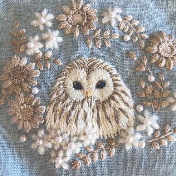 This artist embroiders on real leaves with twigs attached, as well.