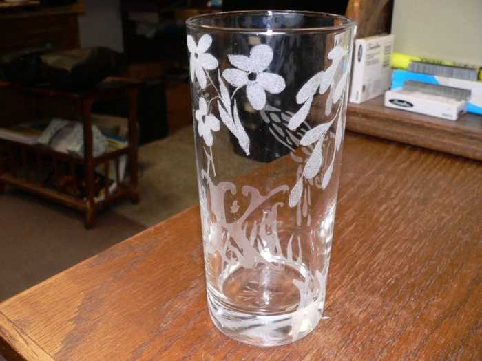 You probably remember my gritching and whining about trying to learn to etch. I’m not sure what the equivalent is of hanging your child’s artwork on the fridge to encourage their efforts, and that may be the case here, but I had a good time thinking of the people receiving the glasses. I’ve always made a present for Mikey, our waitress, but this year I also made a glass for David. He seemed truly touched and brought tears to my eyes.