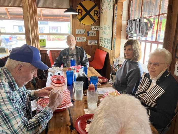 This photo gives you an idea of what our group looks like when we have Lunch Bunch on Fridays at the Pizza Barn in Greenwood.