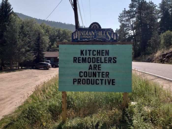 Here, the signs are centered around the reason for the business; such as, “I’m so excited I wet my plants” in front of the hardware store where veggie plants are being sold.