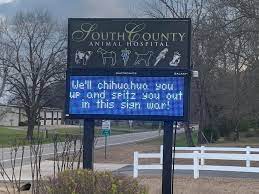 Greenwood Veterinary Hospital – “Give up. Your signs are all bark and no bite.” And, “You’ve got to be kitten me. You call this a sign war?”