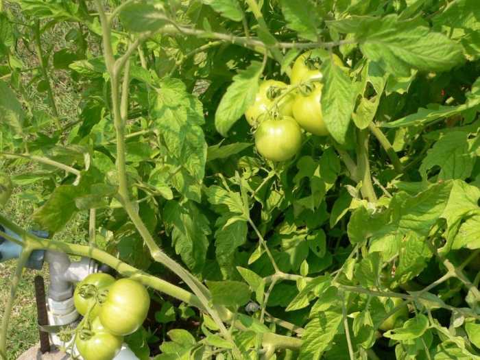 The tomato plants are growing a lot each day. We’re trying to get the irrigation system for the flower planters (which includes the tomato planters) to work.