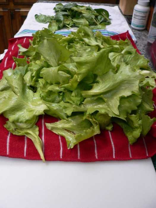 I will also do another harvest in the next day or two. We haven’t finished eating what I gathered the first time yet. :0) I harvest the outer leaves of each of the lettuce plants for harvests, leaving the center leaves to form around the ‘head’.