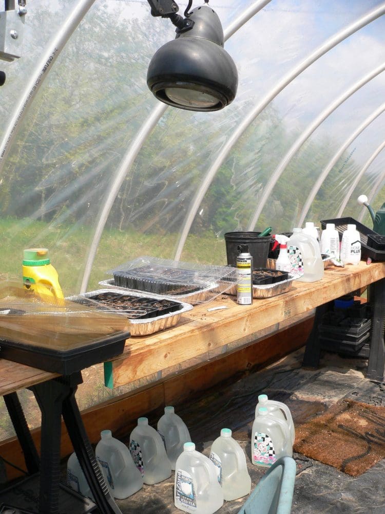 My experience so far is that unless I have a heater (and we would have to keep it running 24/7 with a 350 foot extension cord running from the house out to the greenhouse) it’s too cold to start anything there yet. We tend to go from winter to way too hot in rapid succession, and then I have trouble – even with the extension cord, an exhaust fan, and the opposite people door open, to keep it COOL enough! So I’m scouring the net trying to find information that will help me deal with the extremes we have in Arkansas.