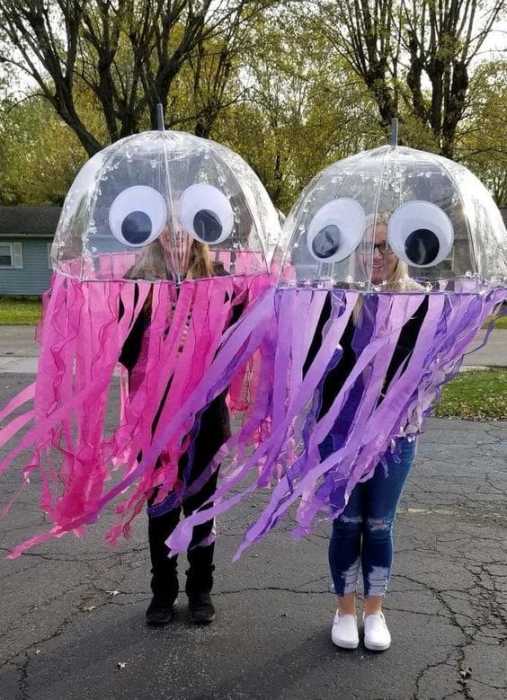 Source Unknown – Sorry. These costumes would be particularly good on rainy, cold Halloweens, except you’d need a way to free your hands to gather candy and other goodies.