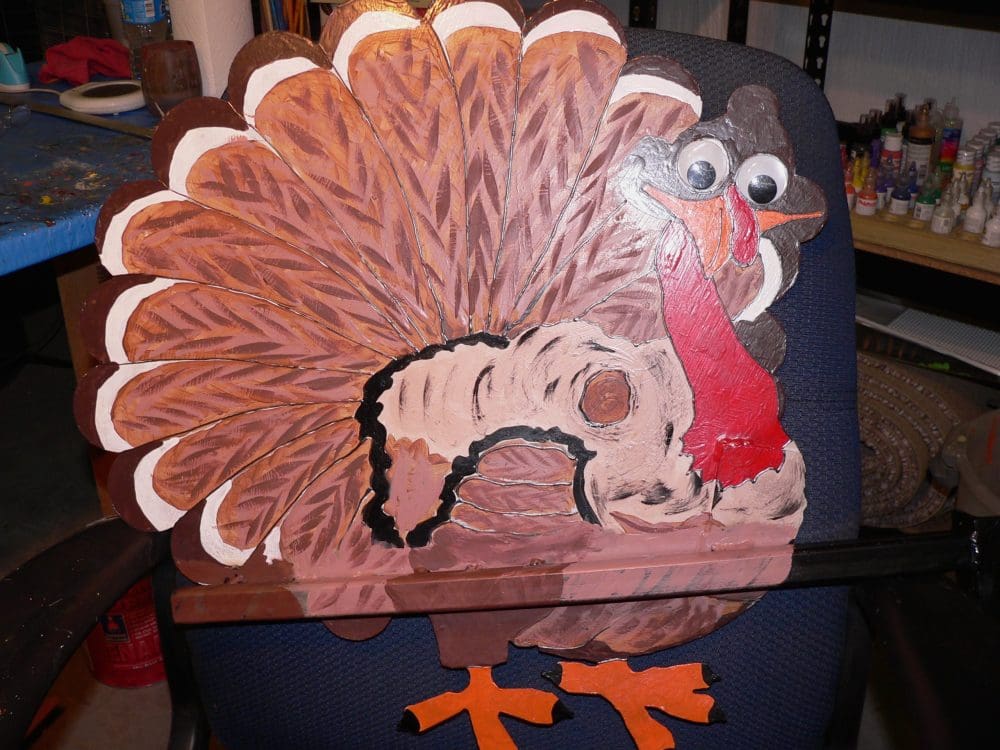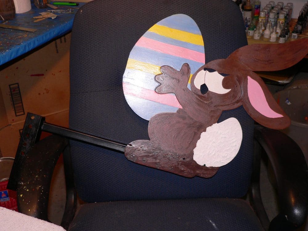 We went out to the shop to experiment with the air brush in the redoing of our sun/moon metal wall hanging. I felt really intimidated, since I’ve never used an air brush before. This made me determined to at least TRY it. I used paint thinner to make sure that the air brush and tube in the bottle were clean and ready to use. The other end of the tube is attached to a compressed air bottle. We then switched the bottle to a black paint for the shading we were trying to do. I practiced on a cardboard box until I was achieving a reasonably uniform, light spray. I had used tracing paper to mask some areas I didn’t want any shading on. I was able to achieve a darker shading around the sun face and along one side of the moon, with lighter shading on the flames of the sun. My husband and I looked at the picture on the computer together, deciding where the next shading should be.