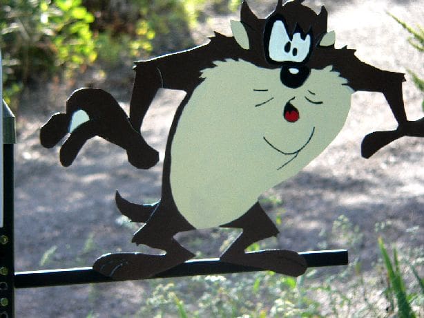 My husband and I have a lot of  fun creating decorations for our mailbox based on characters we loved when we were kids. The latest is the Tasmanian Devil from the Loony Tunes cartoons. The creator of “Taz” is Robert McKimson.