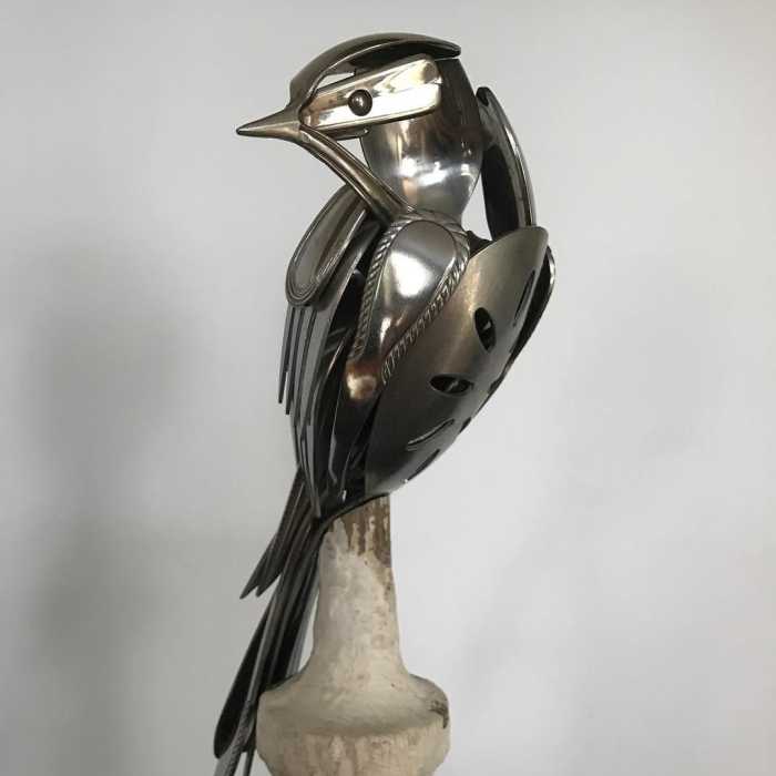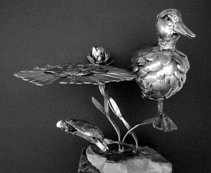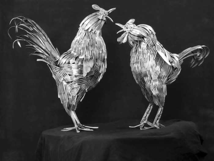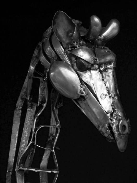 Tagged as Art From Found Things, cutlery art, scrap metal art