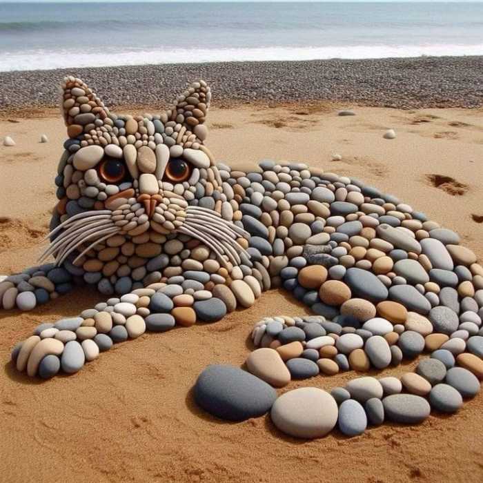 I’m totally in awe of this woman’s talent. She arranges PEBBLES on a flat space and makes you FEEL. And, not only does she do that, bringing it to an art form, but mixes media, painting details and backgrounds to make each one a true work of art. Mind-boggling.