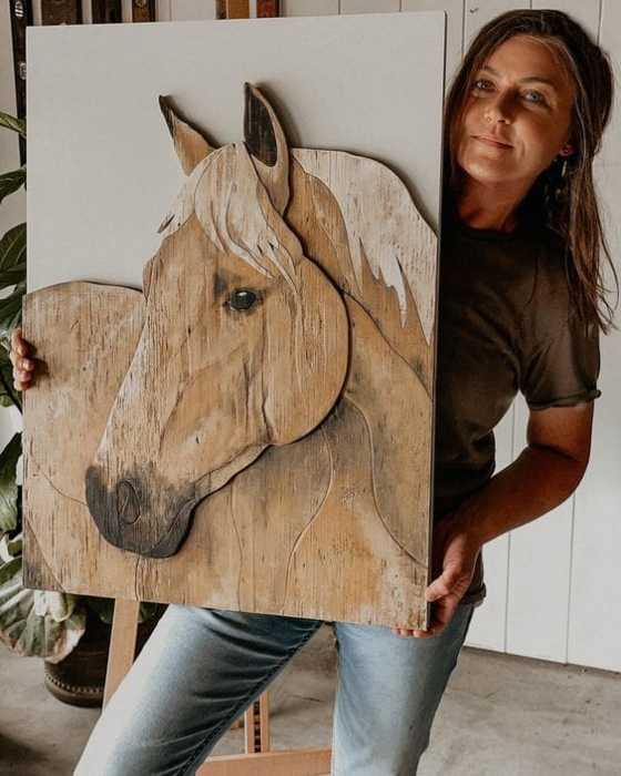 I wanted to share more of Laney’s animal portraits from wood with you. I think this is super-creative and different from anything I’ve seen.