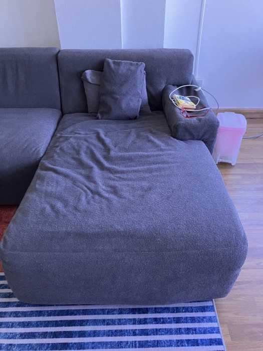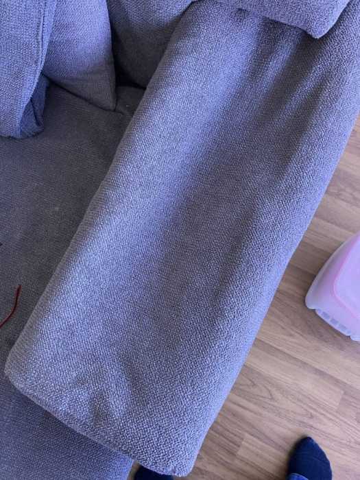 It’s really old and the lounge part is quite rump-sprung. The material will not smooth out. The last picture shows the arm, from which all the stuffing is gone .