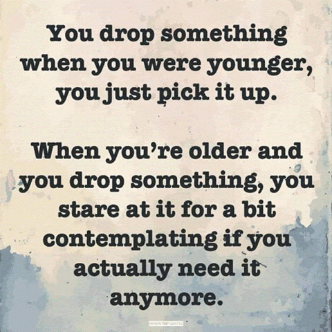 I live with the illusion that I’m still young most days, doing what I need or want to do, paying the price for that later – when my body laughs at me, and then turns the screws by going on strike for a time, adding insult to injury by making me walk around like a really old lady, creaking when I get up or sit down.