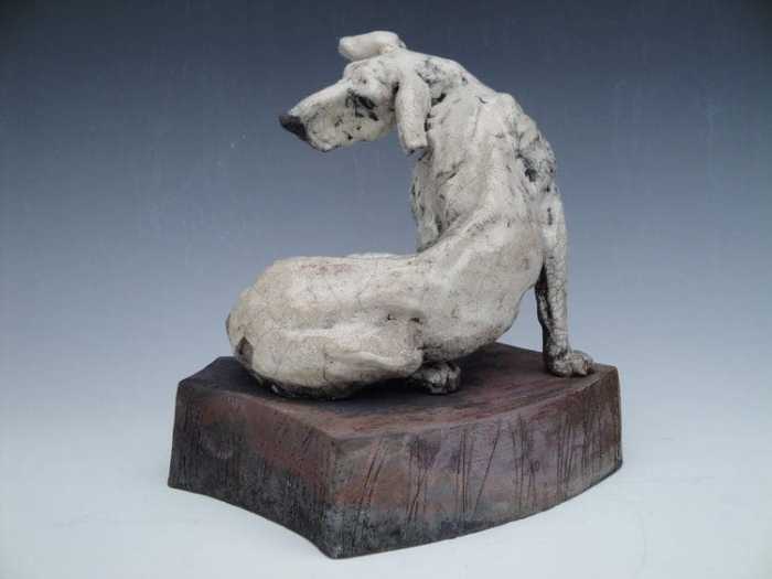 The thing I love about Celia Allen’s work is that she doesn’t just sculpt a ‘dog,’ she captures the love of ‘dogdom,’ with playful poses and interactions between two pieces. It shows her love and understanding of dogs. It would be fun to be a dog at her house. :0)
